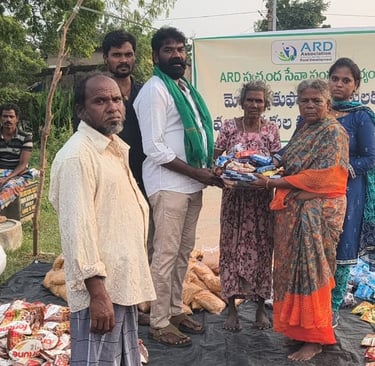 Today, 97 families affected by the recent Montha Cyclone in Busagadipalem village, Vidavalur Mandal received dry ration kits as part of our relief support.