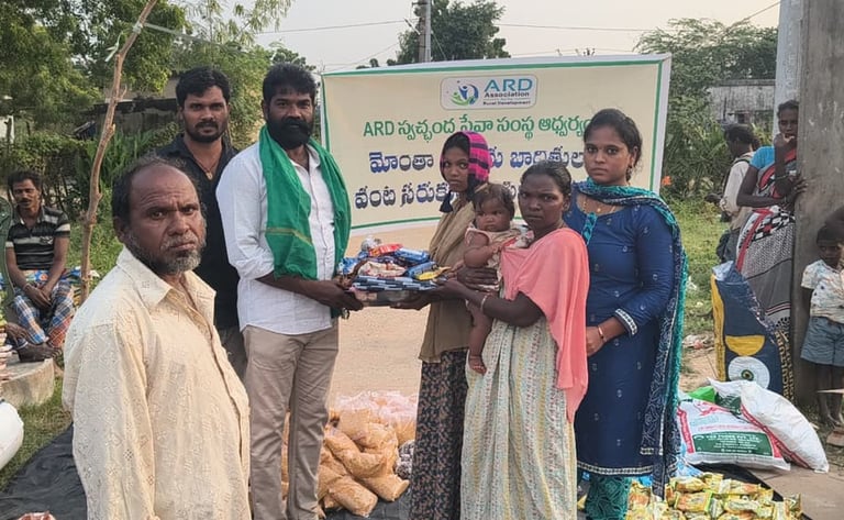 Cyclone Montha Relief Distribution in Busagadipalem: A Helping Hand for Affected Families
