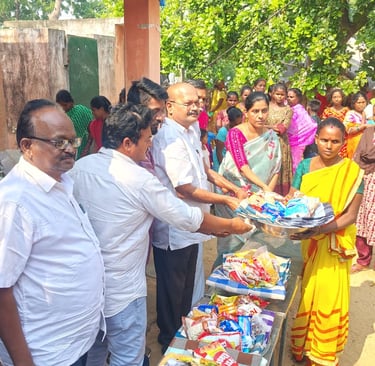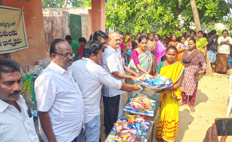 Mandal Level Meeting with SHG Group Members and Cyclone Montha Relief Distribution in Indukurpet Mandal