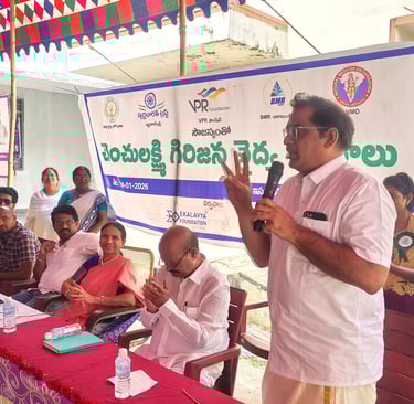 Ekalavya Foundation, in collaboration with the Association for the Rural Development (ARD) and the District Medical & Health Department, successfully organised 11 Chenchu Lakshmi Tribal Medical Camps on 04 January 2026. The programme was supported by VPR Foundation, Swarna Bharat Trust, National Medico Organisation (NMO), and BMR Charitable Trust.