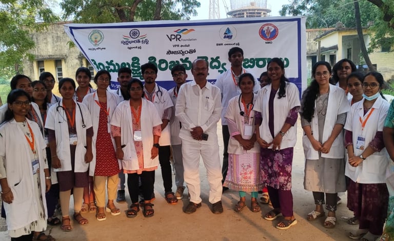Transport, food, and medicine arrangements were supported by Swarna Bharat Trust, VPR Foundation, BMR Charitable Trust, and the District Medical & Health Department. Government mobile medical vehicles were also deployed.