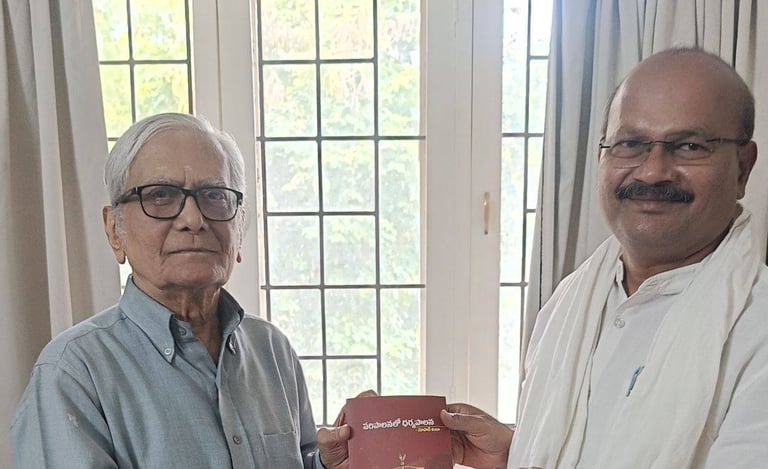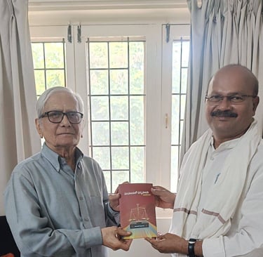Dr. Kanda garu graciously presented me with his inspiring book โParipalanalo Dharmapalanaโ and blessed our continued work.