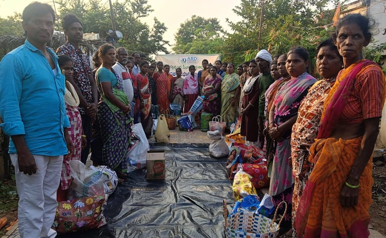 Association for Rural Development (ARD) organized a Cyclone Relief Distribution Program at Singapeta Village, Allur Mandal, for families affected by the Montha Cyclone.