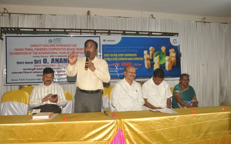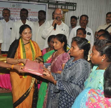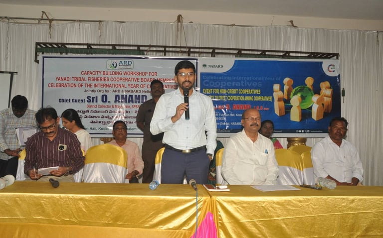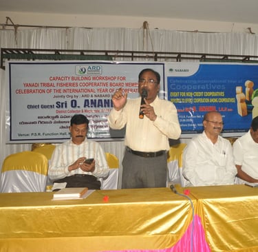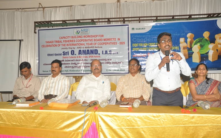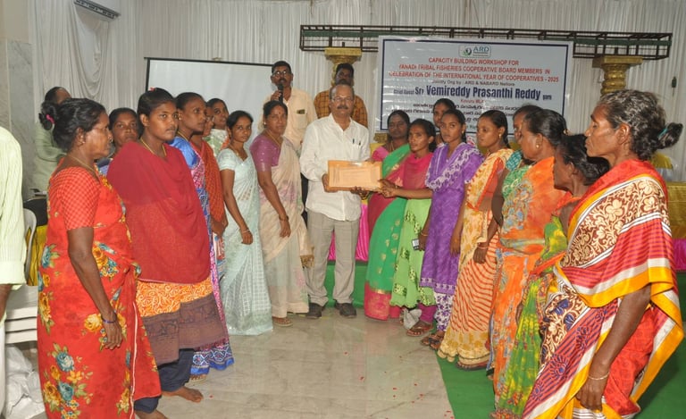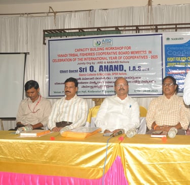 ARD organized a landmark workshop for 24 Yanadi Women Fisheries Cooperatives. Over 350 tribal women participated, gaining awareness on SHGs, FFPOs, livelihood schemes, and entitlements on 25 June 2025 | PSR Function Hall, Rajupalem, Nellore Dt.