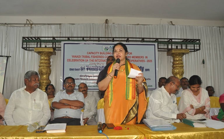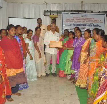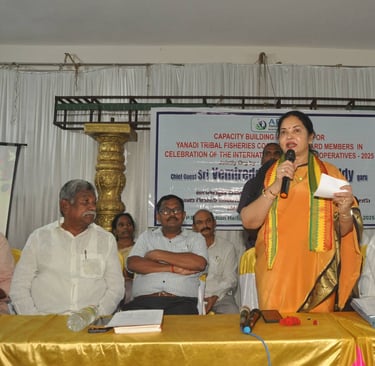 Workshop for 24 Yanadi Women Fisheries Cooperatives. on awareness of SHGs, FFPOs, livelihood schemes, and entitlements